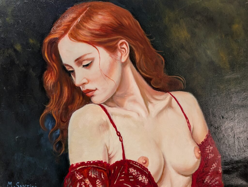Un’opera figurativa di gusto neoclassico che richiama la precisione accademica, con un’attenzione particolare alla resa anatomica e alla morbidezza della luce